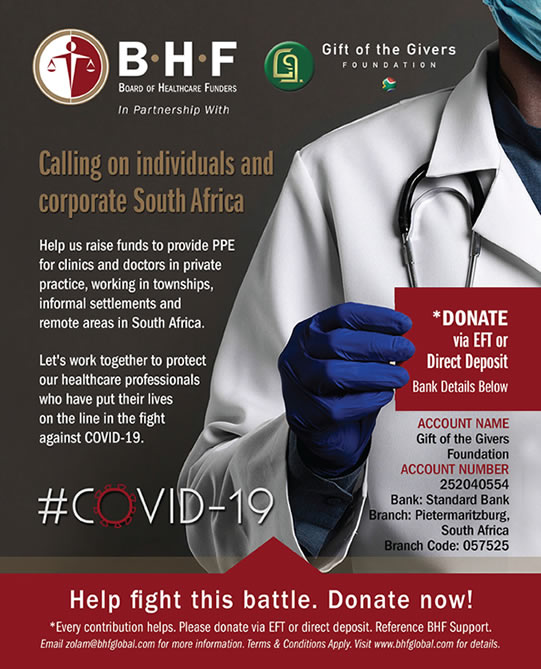 The Board of Healthcare Funders (BHF) has joined forces with Gift of the Givers to help raise funds in support of clinics and doctors in private practice, operating in townships, informal settlements and rural and remote areas.