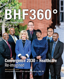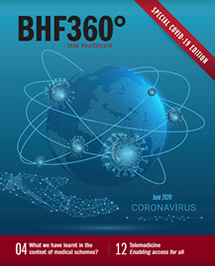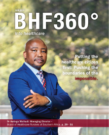 BHF 360 º into healthcare magazine is a healthcare resource guide for ideas, strategies, technology and practices for healthcare executives creating, leading, and transforming the healthcare environment in Southern Africa. Published by the Board of Healthcare Funders of Southern Africa, the magazine aims to give a 360 º view of critical issues in healthcare. It identifies trends, provides a platform for thought leadership.